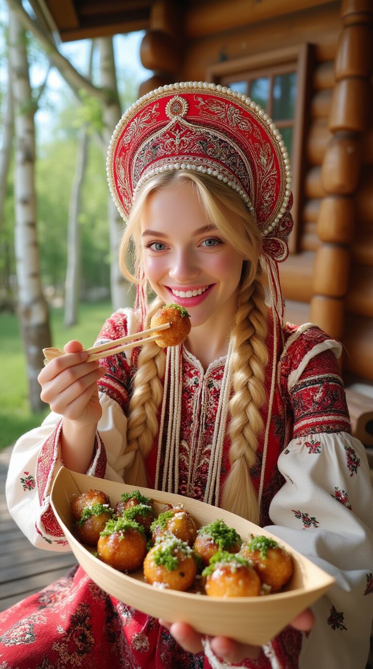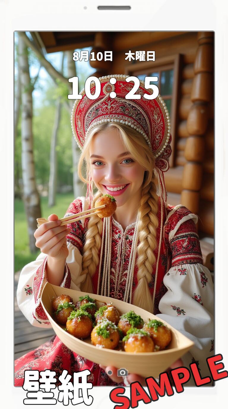 AIで作成した、たこ焼きを食べているロシアの女性のイメージです。